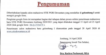 Download [pdf-embedder url="https://www.stiedewantara.ac.id/wp-content/uploads/2020/04/PENGUMUMAN-GELOMBANG-1-TA-2020-2021.pdf" title="PENGUMUMAN GELOMBANG 1 TA 2020-2021"]