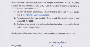 ALUR PENDAFTARAN CALON MAHASISWA BARU STIE PGRI DEWANTARA JOMBANG TA 2020/2021