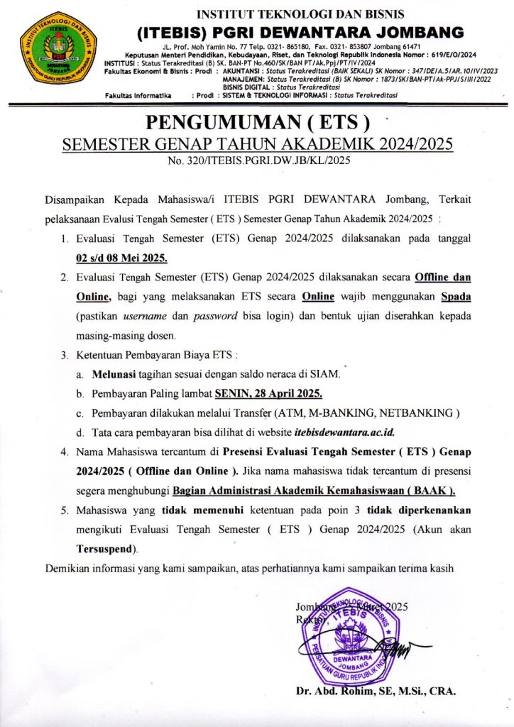 Puji dan syukur kita panjatkan ke hadirat Allah SWT atas segala limpahan rahmat dan karunia-Nya kepada kita sekalian, sehingga website STIE PGRI Dewantara Jombang dapat di publikasikan.